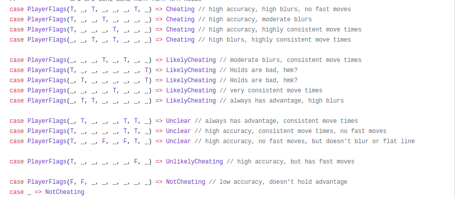 Here you can see the conditions necessary to be considered cheater (directly from lichess opensource repo):