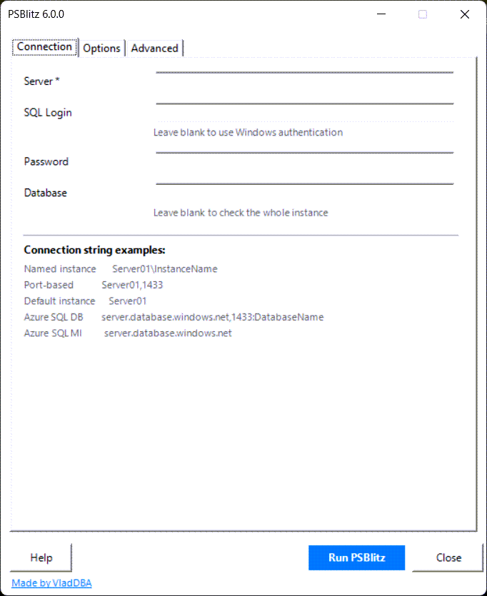 - For the time being PSBlitz.ps1 can only run against SQL Server instances, Azure SQL DB, and Azure SQL Managed Instance, but not against Amazon RDS.