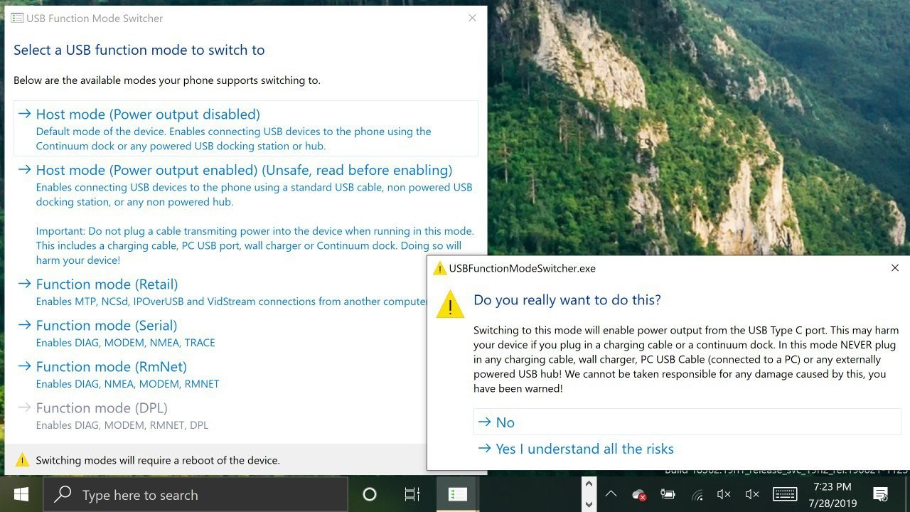 Switch USB port roles on phones running Windows Desktop