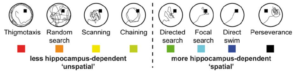 The Rtrack algorithm was exclusively trained with data from Morris water maze experiments with mice of different sex and genotypes, where multiple experts visually classified images of swim paths into different search strategies. Those 9 search strategies followed the scheme described at Rtrack Documentation - Strategy description and were classified at least twice until no discrepancies in the called strategies were left. Cases, in which the swim path could not be decided without doubt due to a mixture of strategies in one path or due to none of the 9 strategies being adequate, were discarded