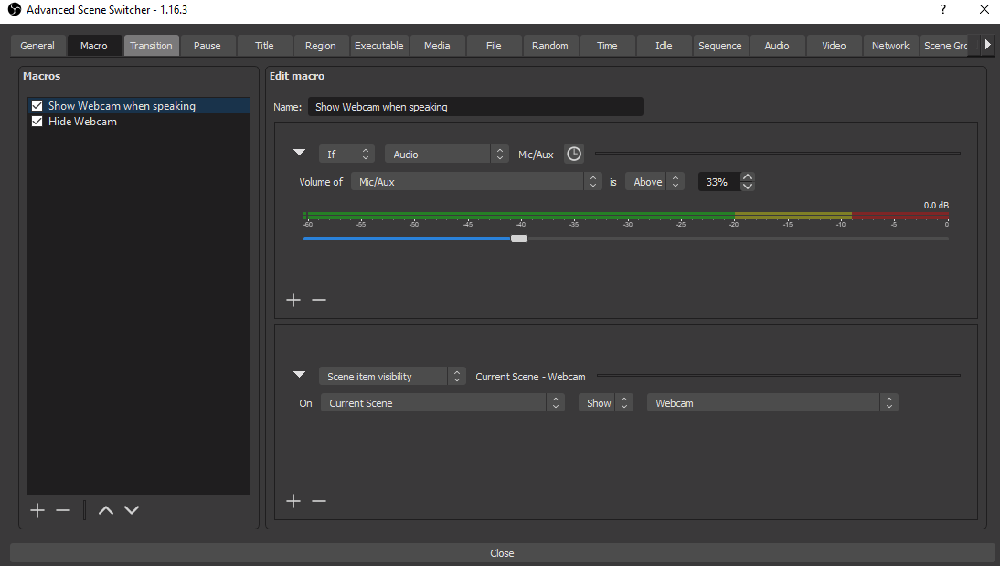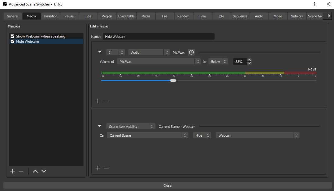 Note that you can also expand upon the above conditions by adding duration modifiers if the showing and hiding of the webcam should happen too rapidly.
