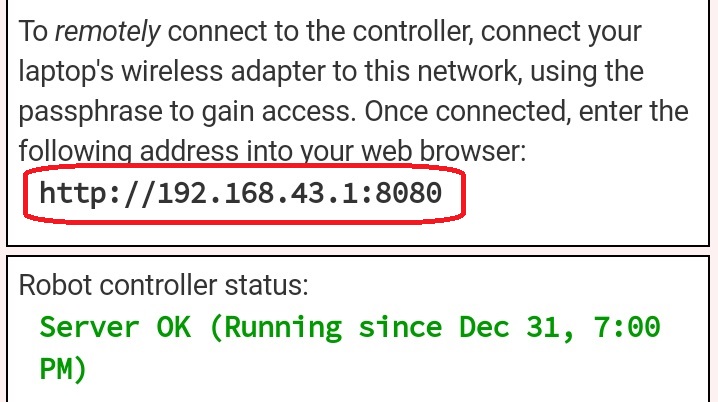 Important Note: If your Robot Controller is an Android smartphone, then the address to access the Program & Manage server is "192.168.49.1:8080".