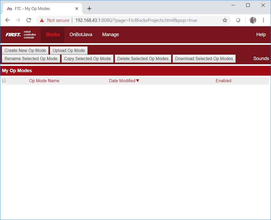 If you connected your laptop successfully to the Program & Manage wireless network of the Robot Controller, then you are ready to create your first op mode. In this section, you will use the FTC Blocks Programming Tool to create the program logic for your first op mode.