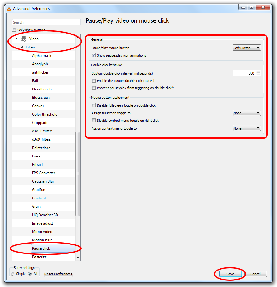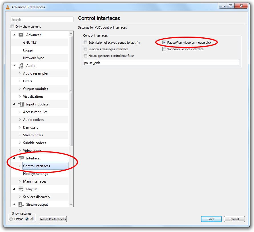VLC plugin that allows you to pause/play a video by clicking on the video image.