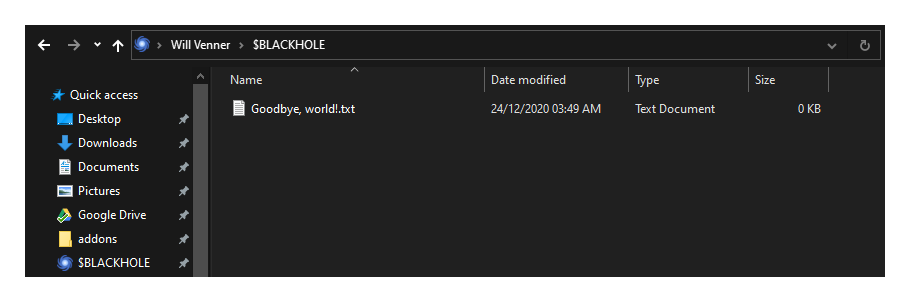 BLACKHOLEdirectory will automatically be added to the Quick Access locations.