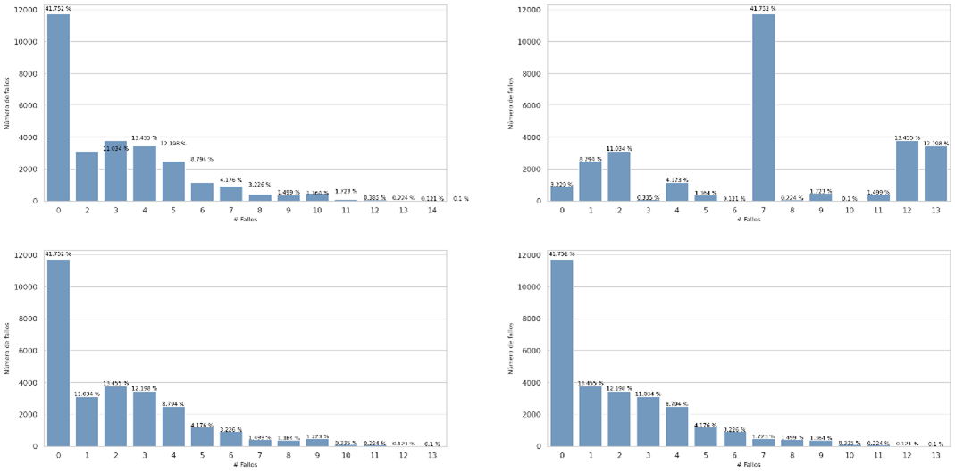 Below, the distribution of the code lengths per symbol for each dataset is shown, there are common features that are independent of the probability distribution of the symbols, we can see that for datasets that have information in natural language, most of the information is concentrated in symbols or bytes of length 3, another relevant feature that is common in uniform and non-uniform distributions is the presence of Benford's law, there are more symbols that begin with the number 1, the objective of this phase is to visualize that Symbol groups contain more information and what length of code is associated with them.