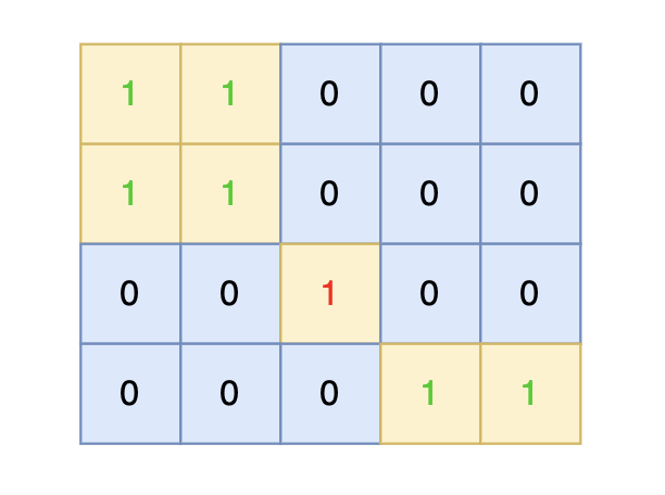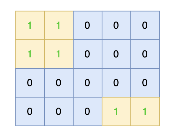 之后 N 行,每行包含 M 个数字,数字为 1 或者 0,表示岛屿的单元格。
