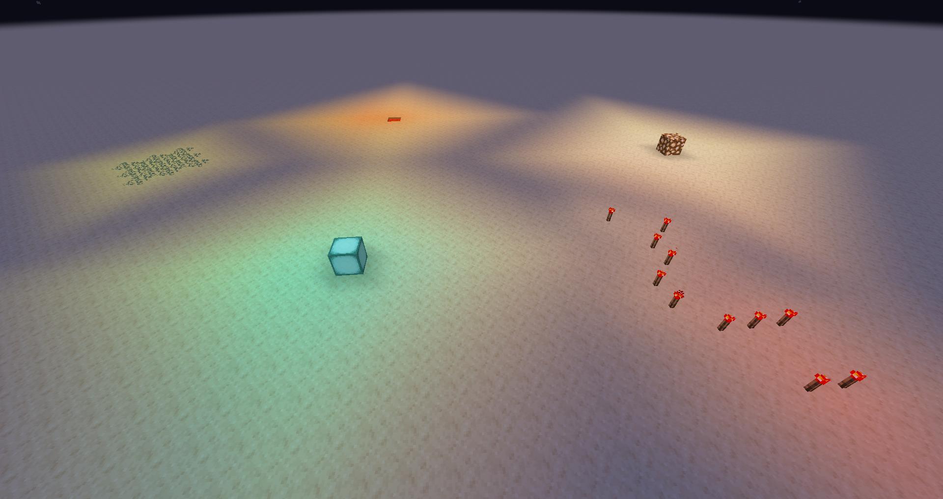 }The configuration must provide a mapping between blocks that emit light and the corresponding hex color value that they should emit. Note that colors aren't represented exactly due to the color space being compressed down.