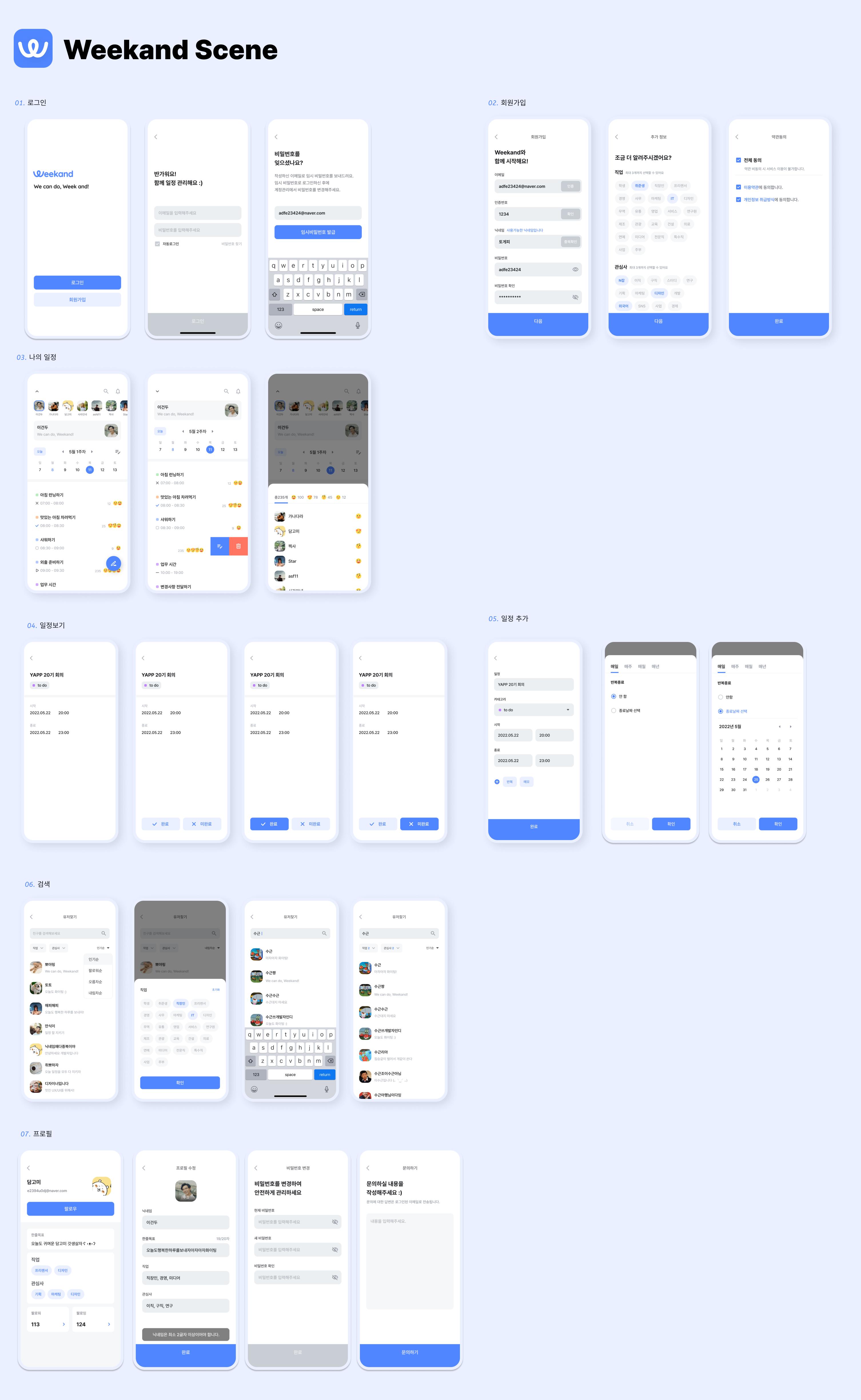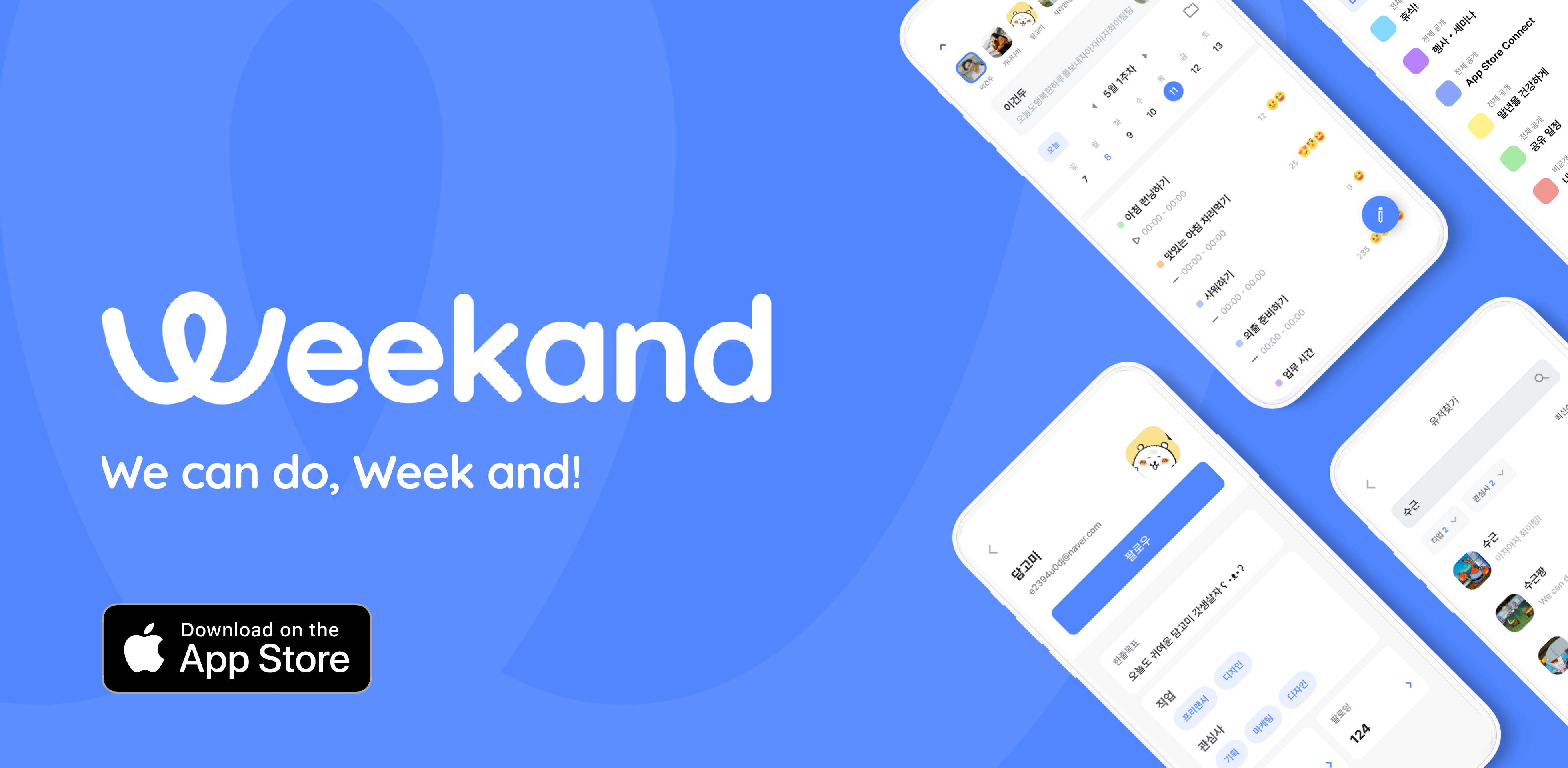 Weekandλ μΌμ μ κ΄λ¦¬νκ³ μΉκ΅¬λ€ λλ λ€λ₯Έμ¬λλ€μκ² κ³΅μ νκ³ μλ‘μ μΌμ μ μ°Έκ³ νκ³ μμνλ©΄μ λ μ’μ μ΅κ΄κ³Ό μνμ νμ±νλ κ²μ λμμ£Όλ μλΉμ€μ λλ€