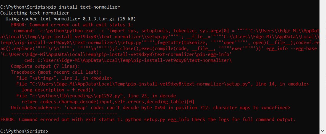 Is there any way to get this install in the current version of Python without error? I have attached a screenshot of the error to this note.