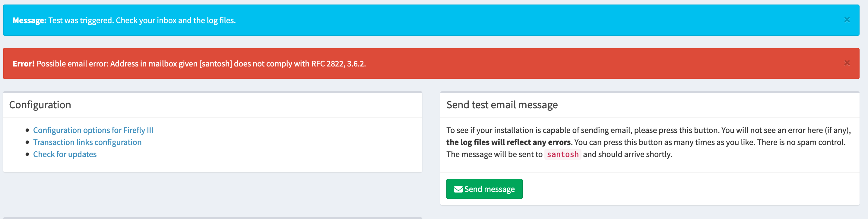 While testing the mail functionality I am getting below error, <img width="1439" alt="Screenshot 2020-06-24 at 1 20 09 PM" src="https://user-images.githubusercontent.com/9120889/85517994-6f8c6480-b61d-11ea-8606-c74652941e89.png"> My email address for this user is mail@sub.example.com