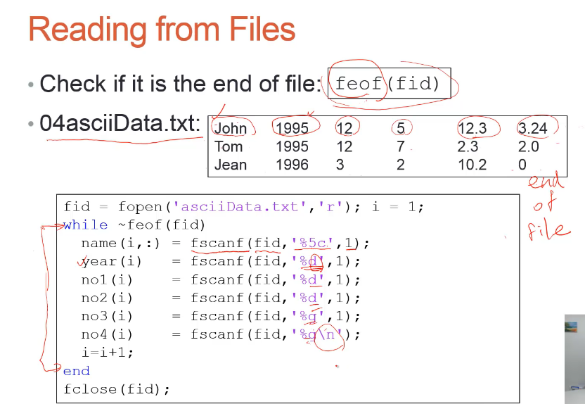 feof(fid) 检查是否到达文件结尾,到达结尾返回 true: