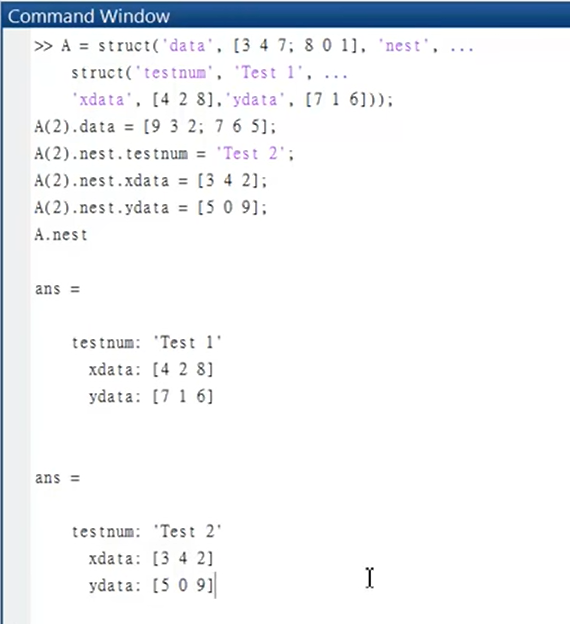 cell2struct() 通过 cell 数组中包含的信息创建一个结构体,重点了解! num2cell() 将数组转换为相同大小的 cell mat2cell() 指定行、列划分数组为 cell