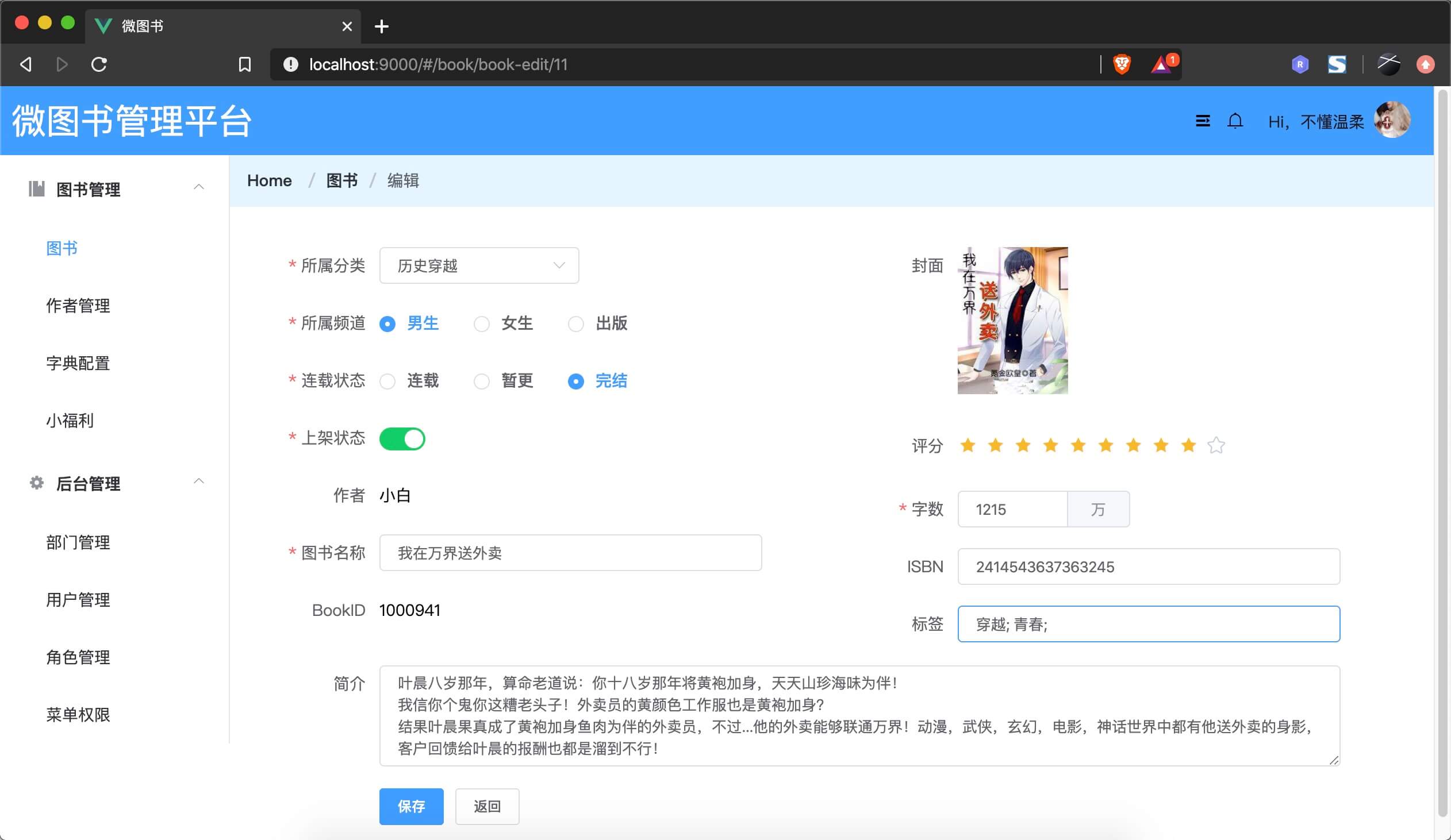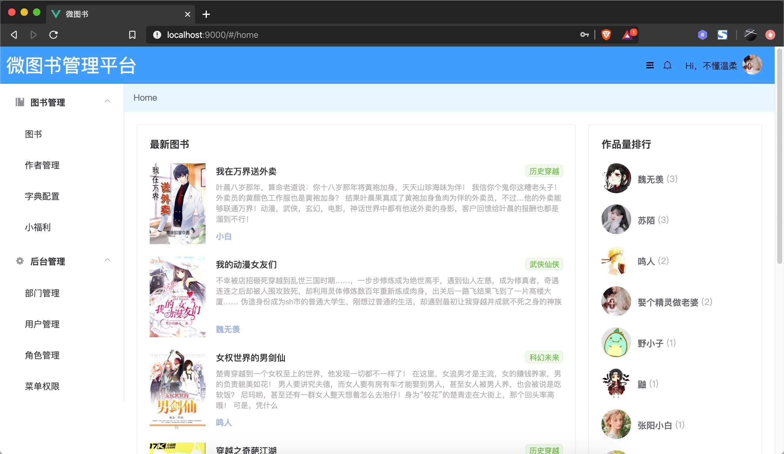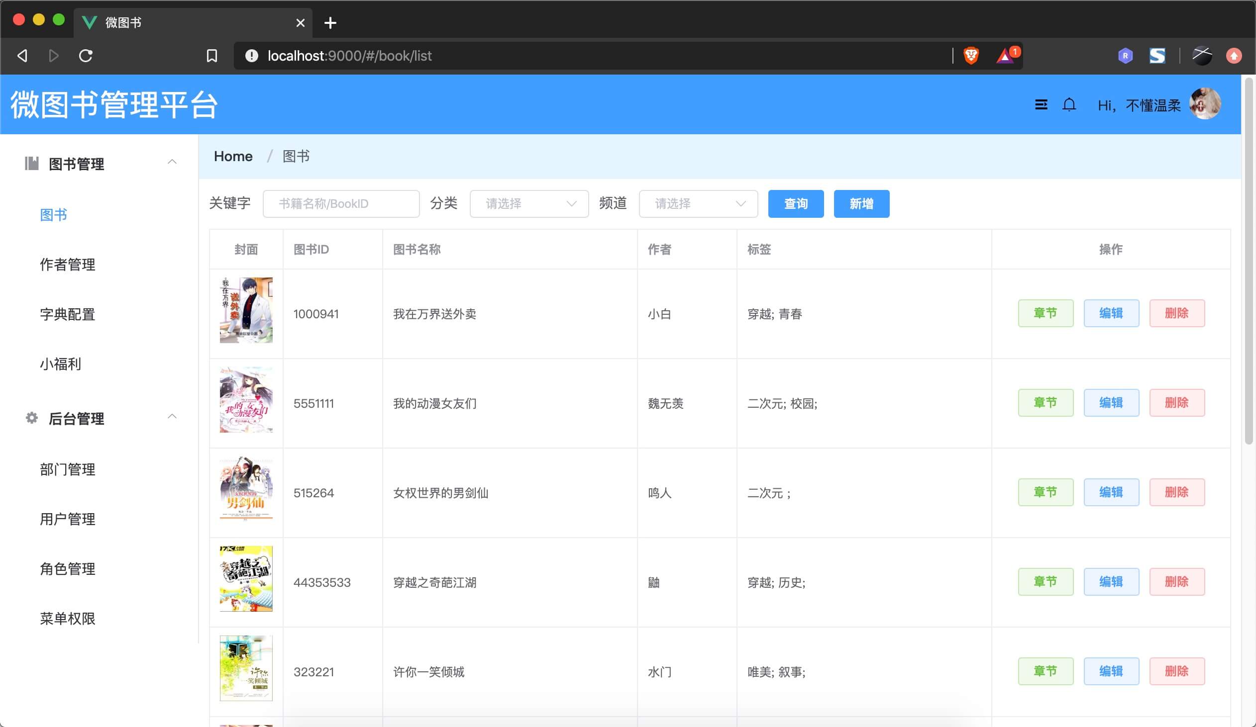 虽是一款图书管理平台,更恰切滴描述的话,其实是一个后台管理的脚手架,任何后台管理内容的方式都大同小异,无非是一套通用的组织权限管理,在这个基础上,也可以用来开发自己想维护的任何模块,对吧