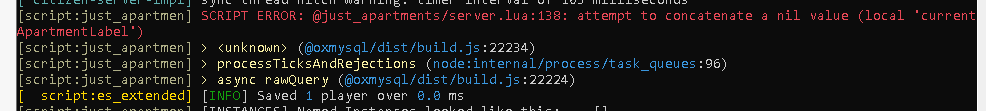 when i try to take a car out of the garage it won't let me take it out and i get this error in console, i'm using esx legacy latest version  -- -- on the other hand I have this error in console about the apartments