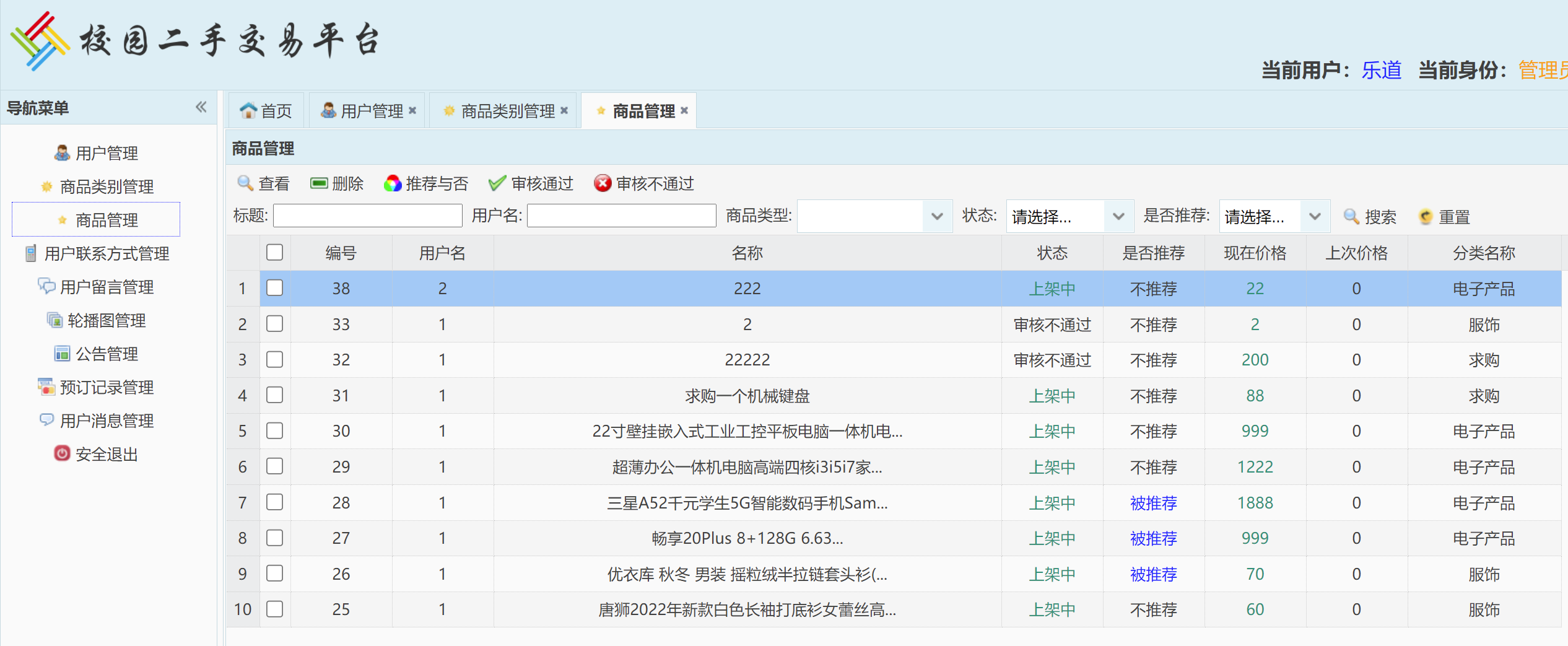 3. 商品管理(查询、删除、审核商品、推荐商品)
