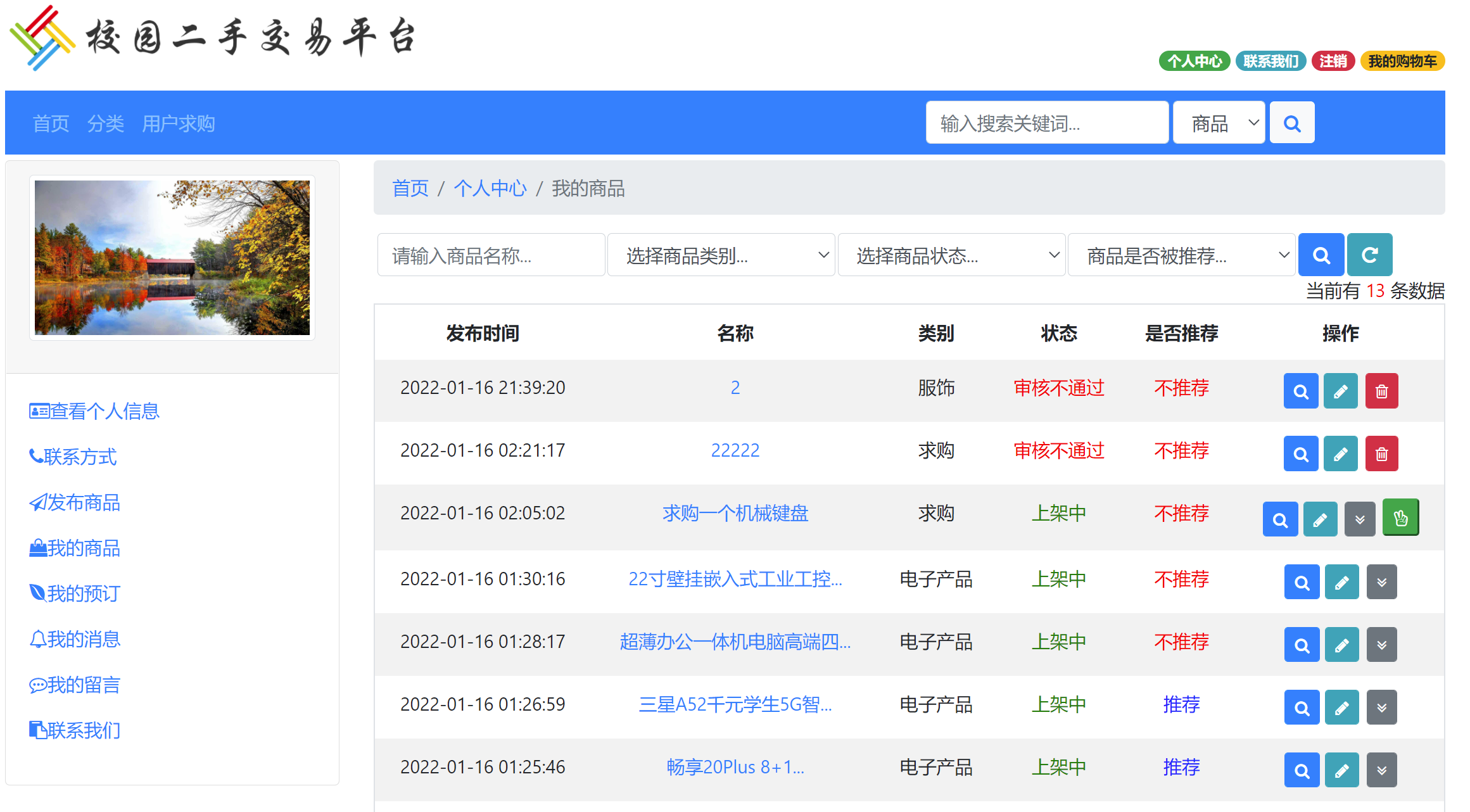 4. 发布商品和管理自己发布的商品(修改、删除、查询、上架、下架、完成交易、取消商品被预订)