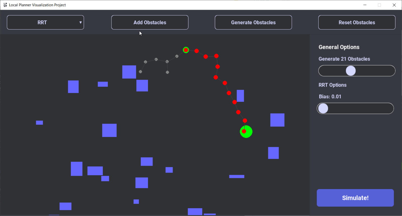 - Random obstacle generation with customizable obstacle count