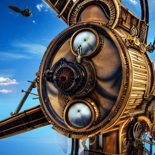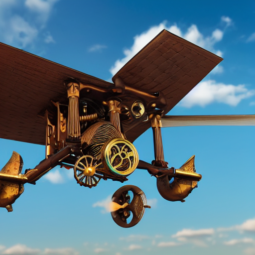 Prompt#4: "a steampunk flying machine flying in a beautiful blue sky, 4k"