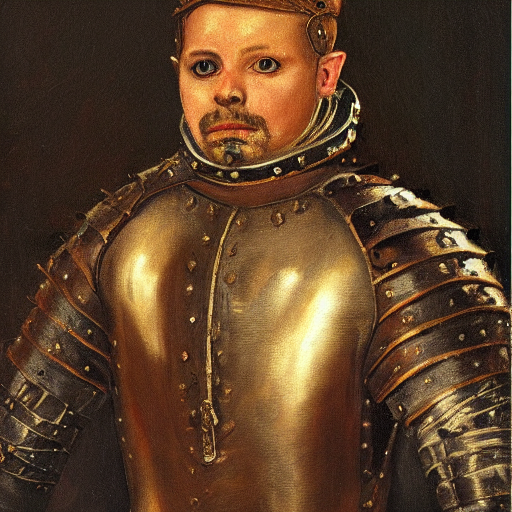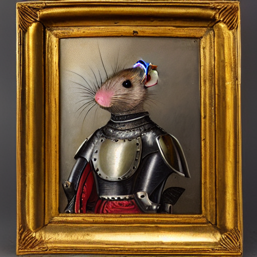 Prompt#3: "a rat in a shiny medieval armour posing for a victorian era portrait, oil painting"