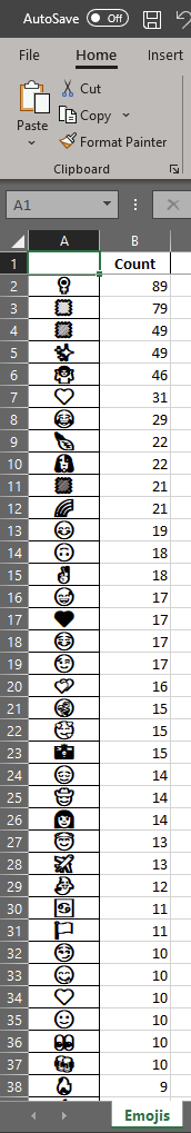 I'm currently using Excel as my database instead of a relational database (e.g., sqlite or PostgreSQL).- Since some emojis are not read in the current