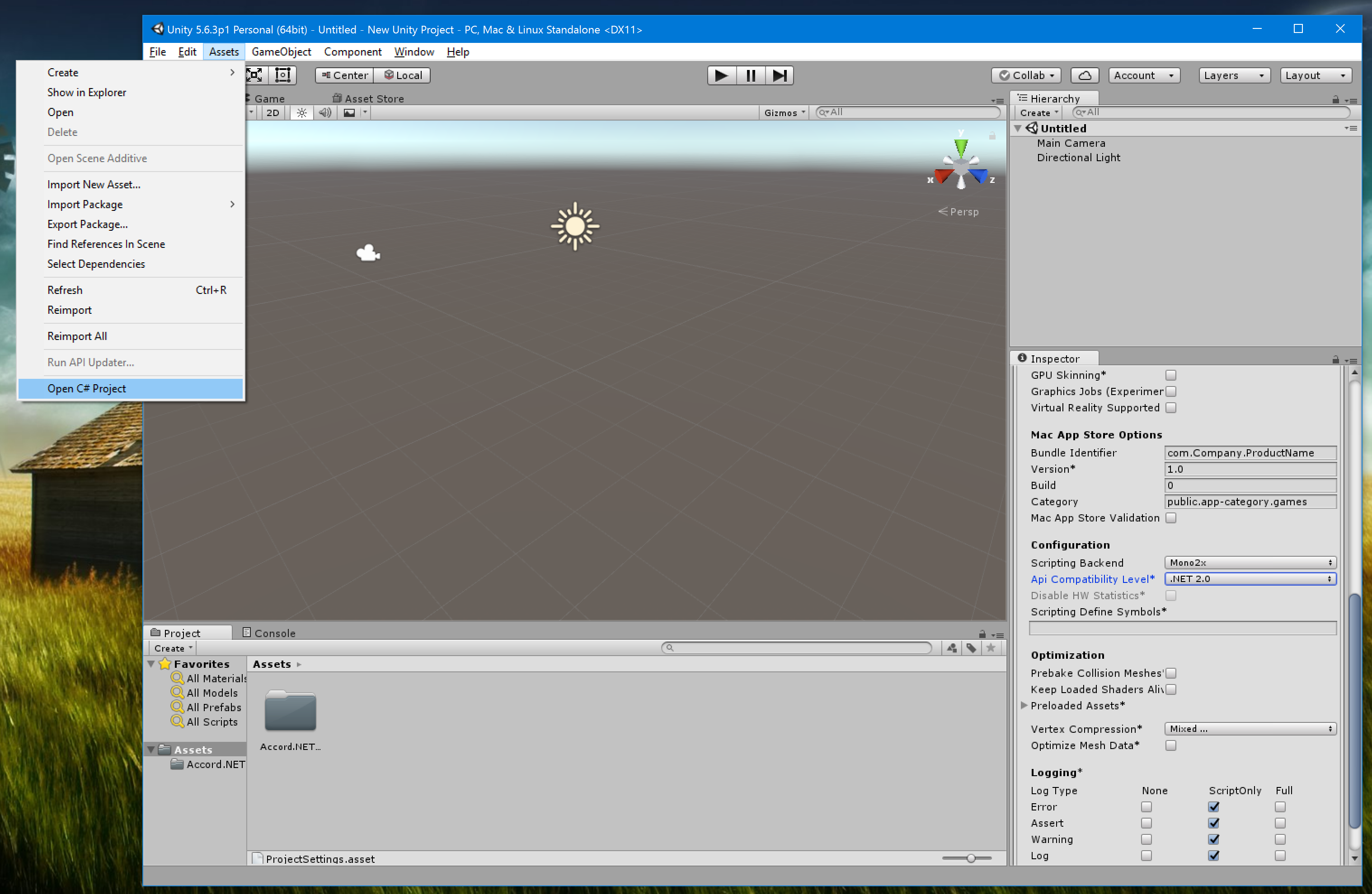 Click Assets -> Open C# Project