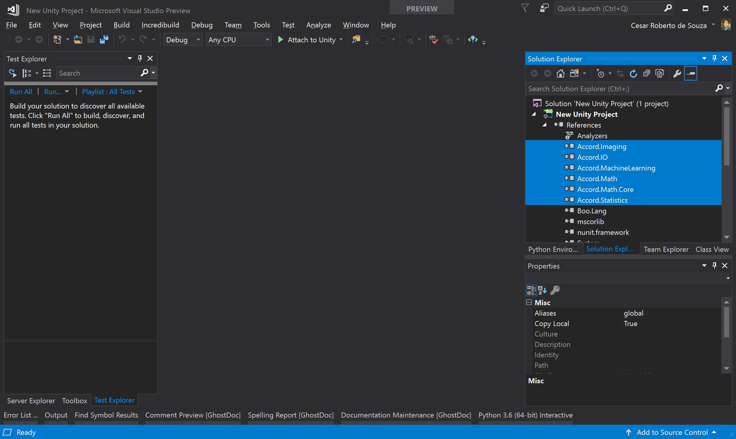 Alternatively, you can also download a pre-existing Unity sample application that already comes with the Accord.NET Framework installed and configured and that you will be able to use as a base for your new projects.