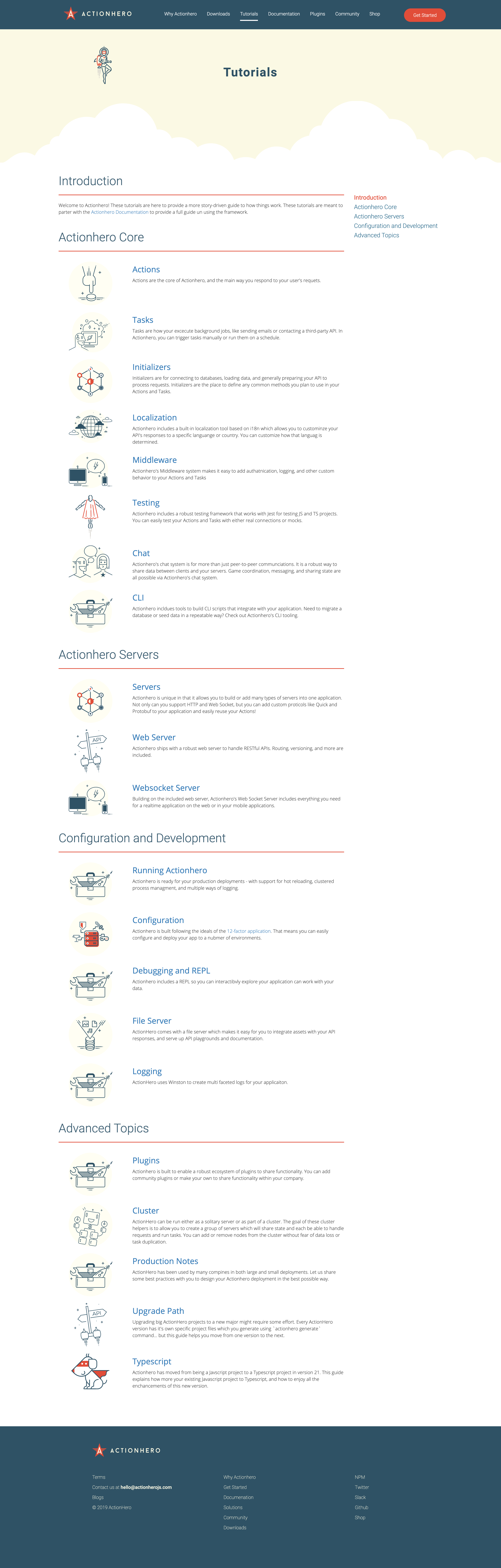 This can be best seen on www.actionherojs.com/tutorials. Note how we are duplicating icons for a few sections. The new icons should match the existing style and be delivered as SVG images.