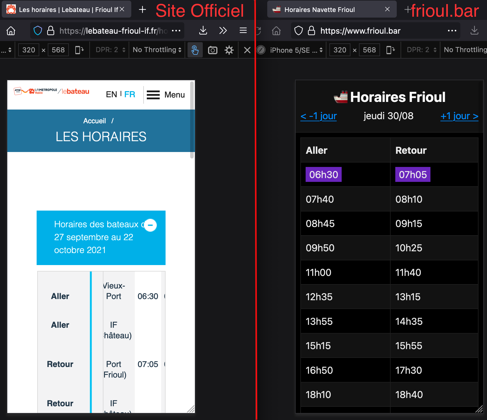 Site non-officiel pour présenter les horaires de la navette Marseille Vieux-Port → Frioul de manière plus lisible et accessibles hors-ligne.