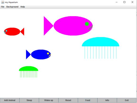 Aquarium-Java-with-gui Aquarium with gui in java with multi threads. Swimmable animals try to eat the worms. **Design patterns implements in this project: ** Singleton Abstract Factory Prototype .C Listener/Observer Decorator Memento
