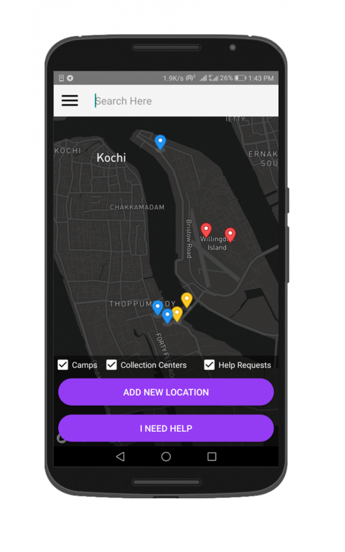 Our inspiration for developing this application comes from the Kerala floods. Kerala is our home state in southern India, and was hit by devastating floods a few months ago. Several relief-camps were set up and tens of thousands of people had to shift to these camps. Due to general lack of coordination and communication, several people lost their lives due to not being rescued in time. Many suffered from starvation and other problems due to essential resources like food, clothing and medicines not reaching them. People who were ready to donate such resources had a hard time finding collection centers where they could donate what they can.