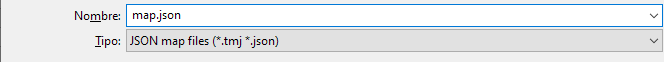 Export your map in Tiled. In map window => File => Export As and select "JSON map files". Set file name and extension as follows:
