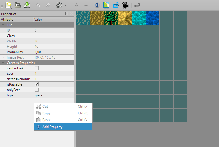 Next, do the same with the tile set. First, you can edit your tile set to define custom properties for each tile, which will be catched by the tiled-adapter module: