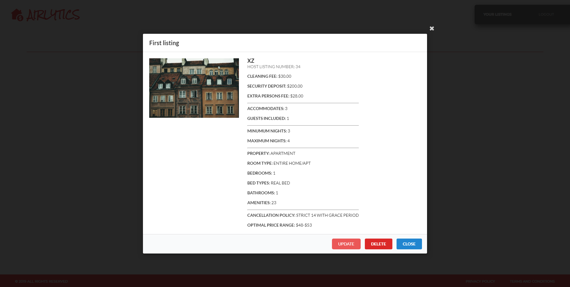 TO VIEW A SPECIFIC LISTING'S DETAILS: Click the View Details button on the Listing Card and a modal will appear with the relevant information as pictured below...