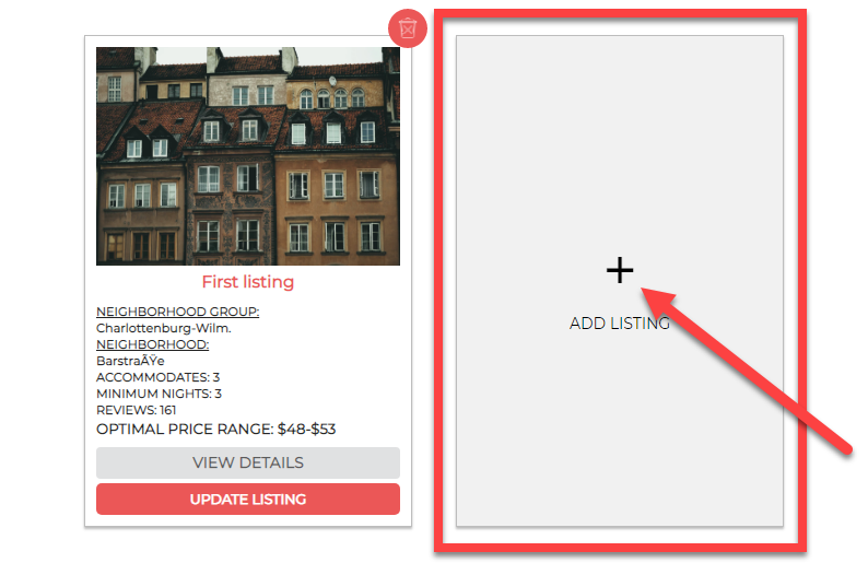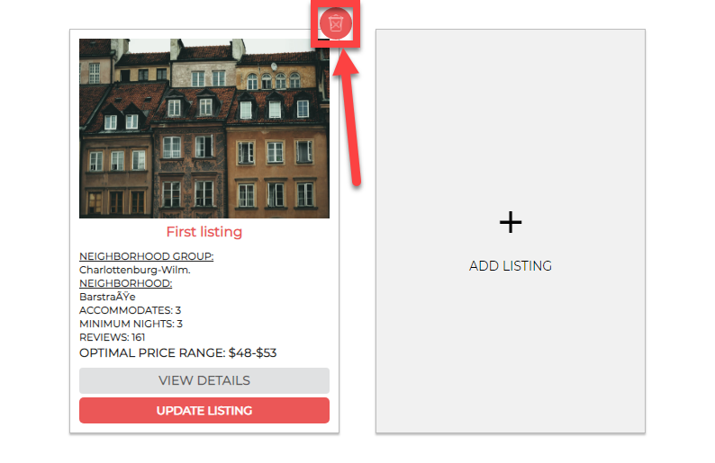 TO DELETE A LISTING: Click the Trash Can icon in the top-right corner of the Listing Card