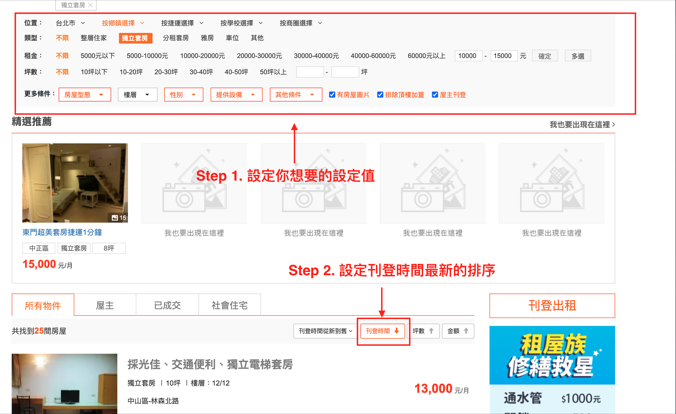 - 去 591 租屋網設定你想要關注的設定