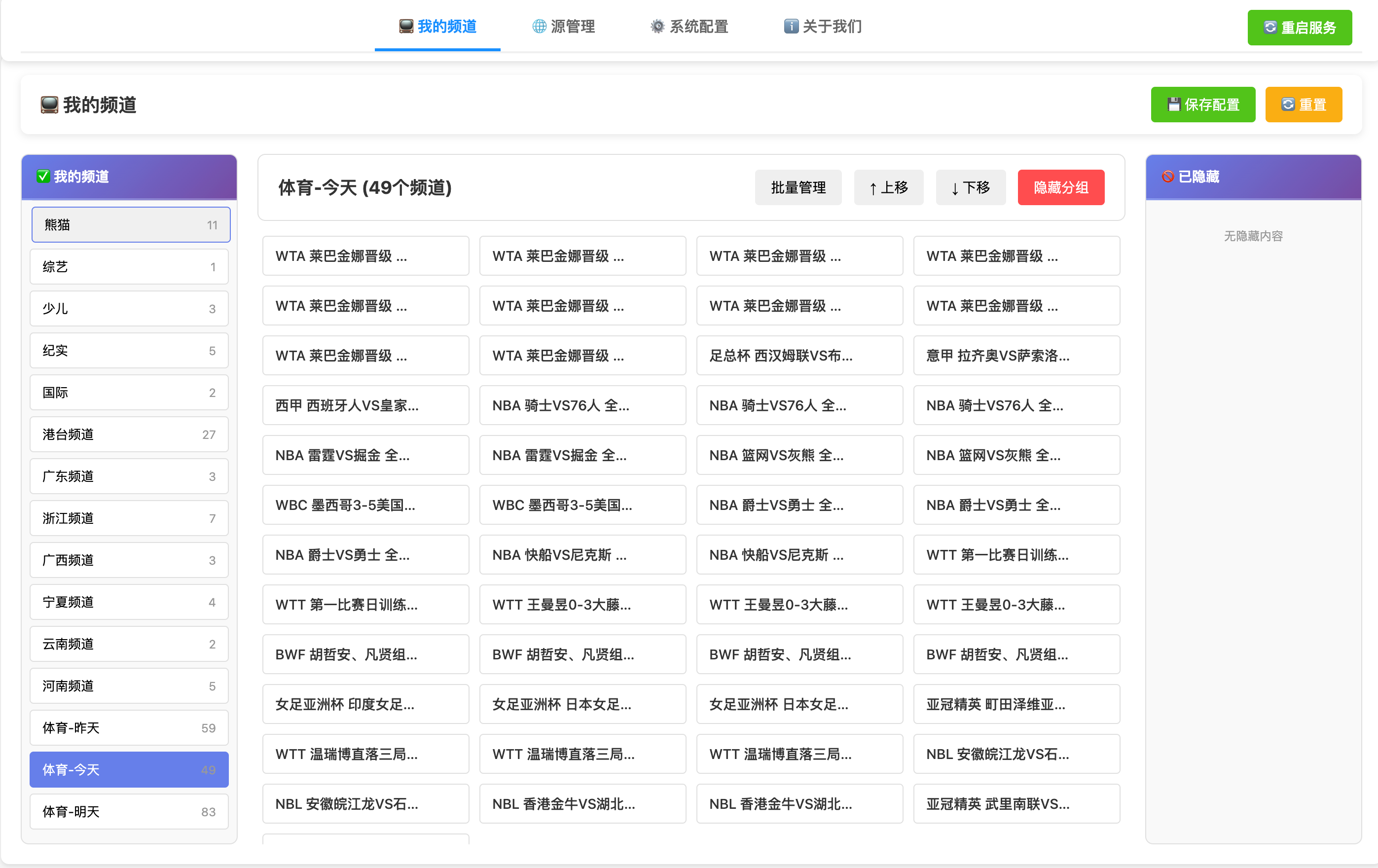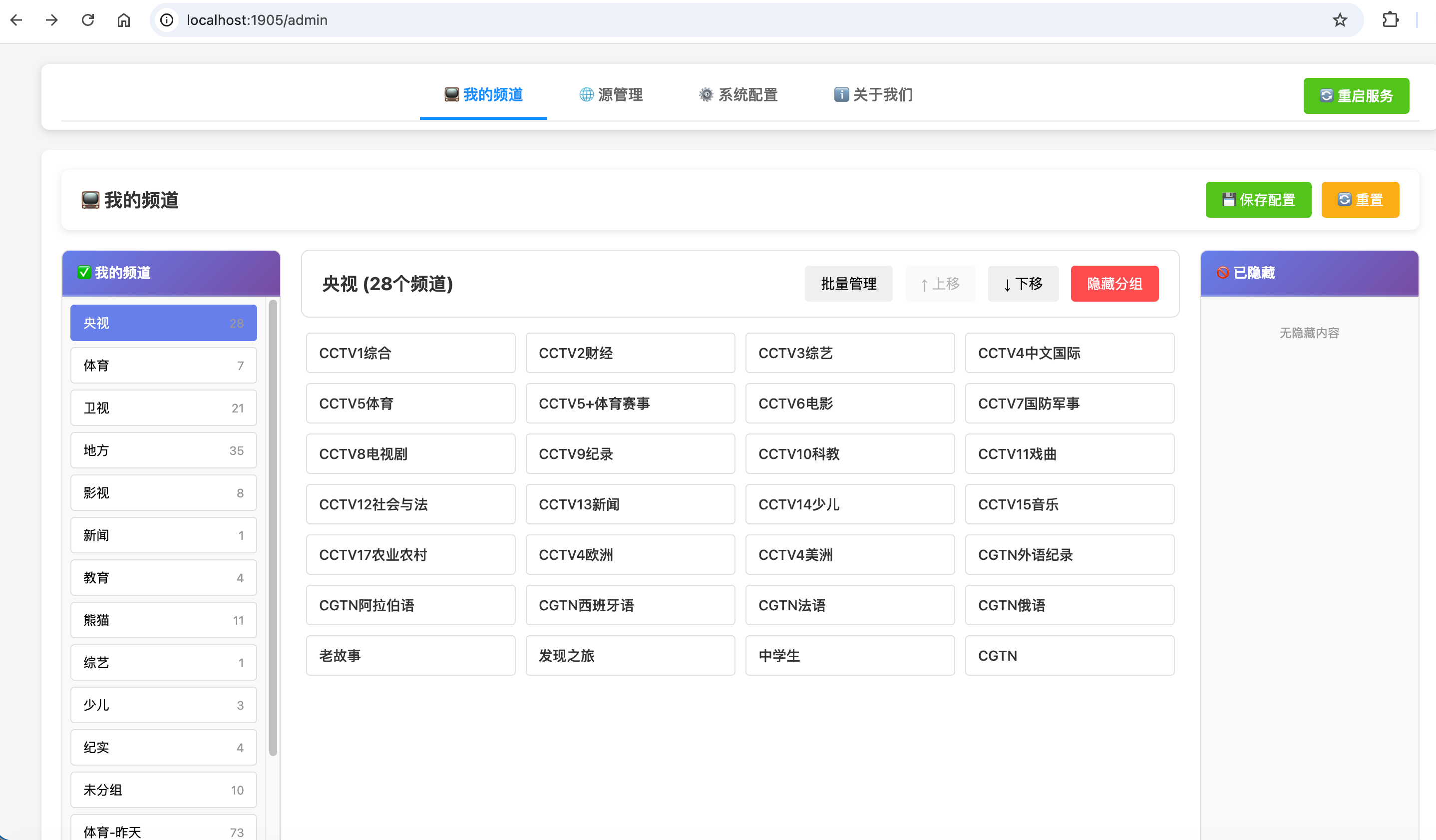 本项目提供可视化的 Web 管理界面,方便您管理外部直播源。
