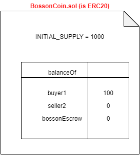 await _bossonescrow.complete(buyer1, "Coffee", {from: escrowAgent})- Expected flow of coins and balance state as per example input: