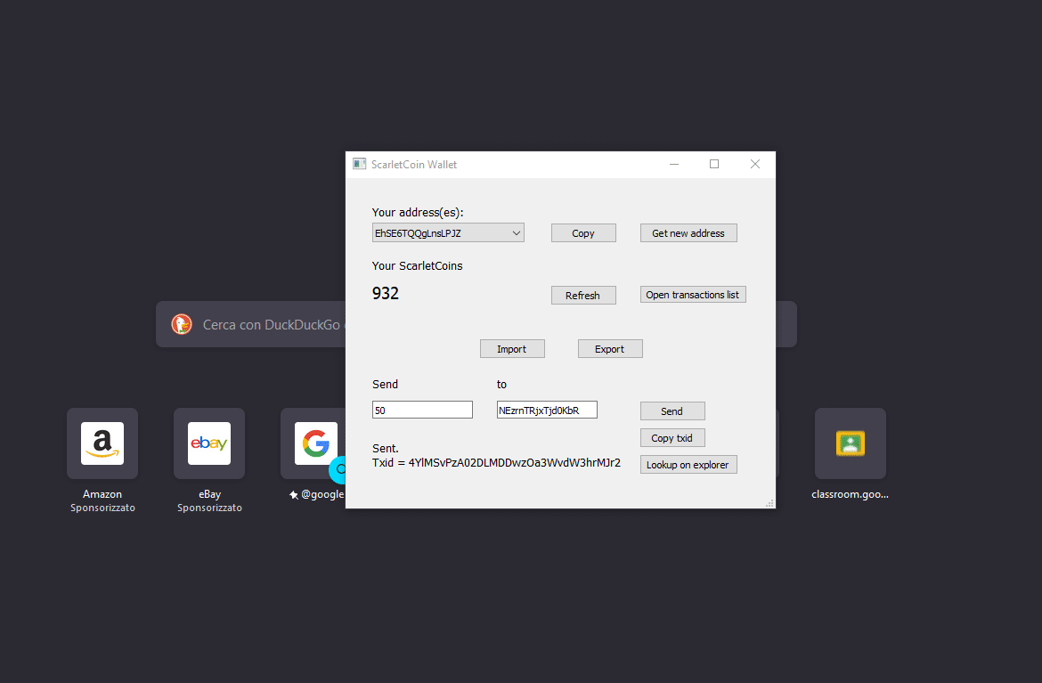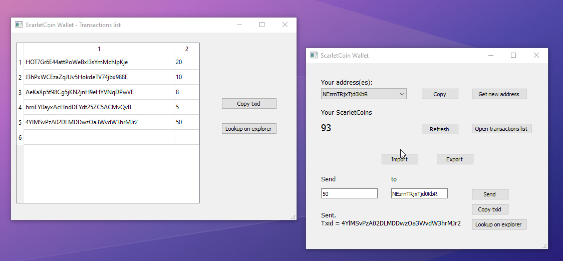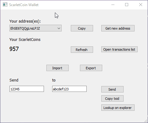 - Send and receive ScarletCoins
