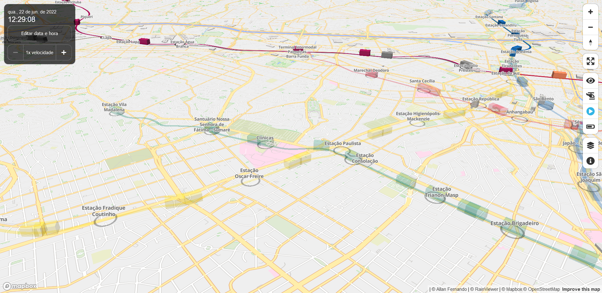 A real-time 3D digital map of São Paulo's public transport system.