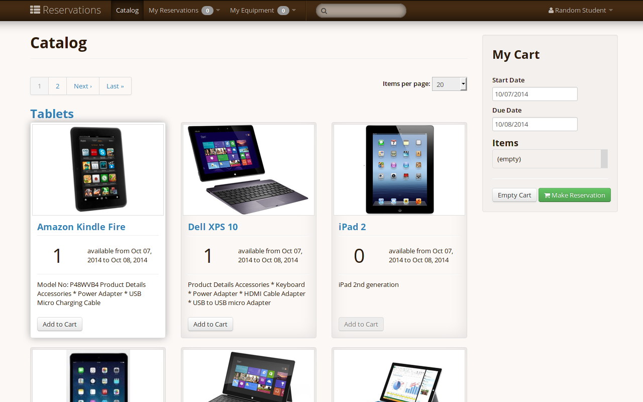 Reservations makes it easy to manage the checking in and out of equipment, much like a library! Here are some of the things Reservations can do: