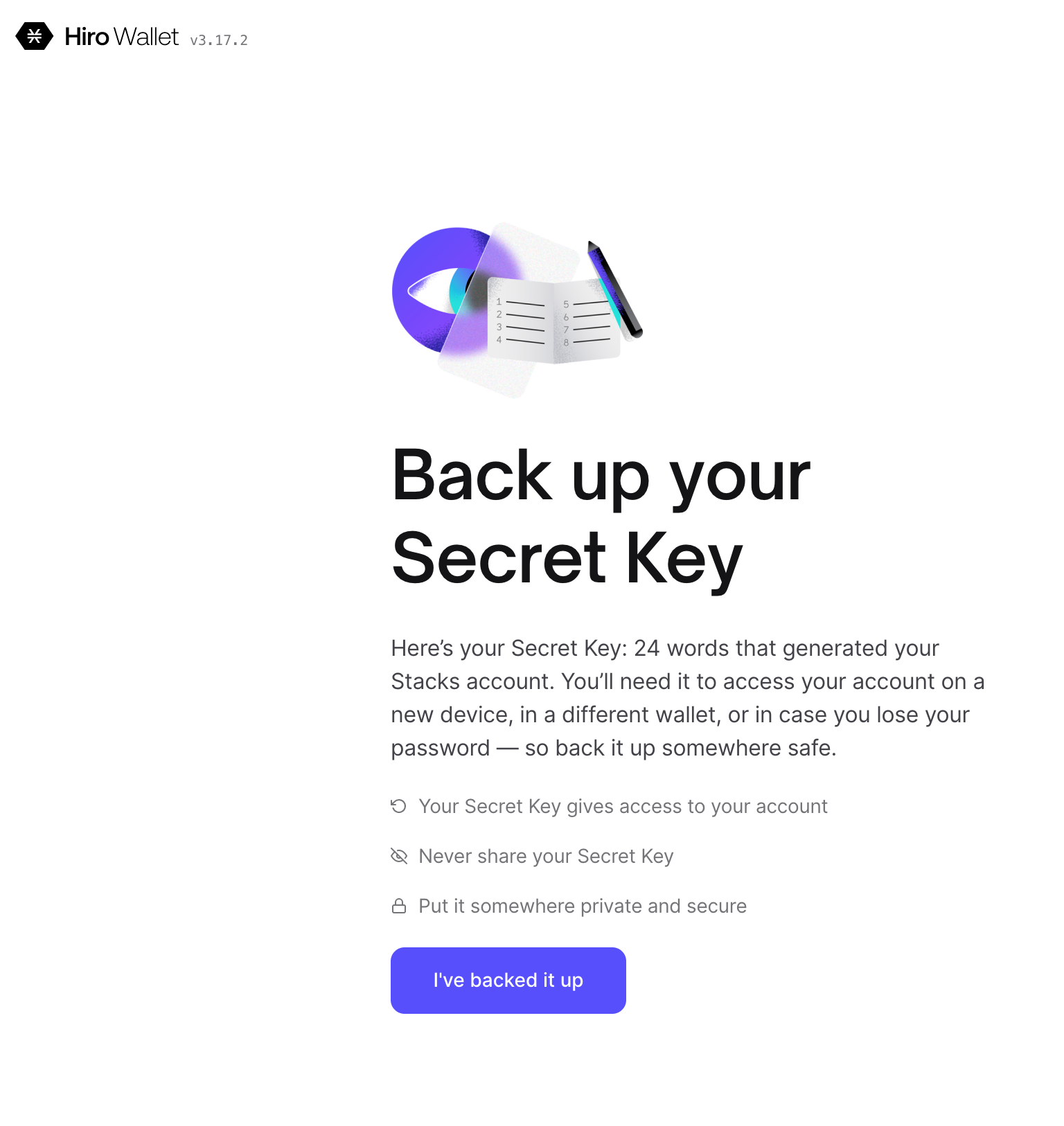 Note: Remember to back up your key