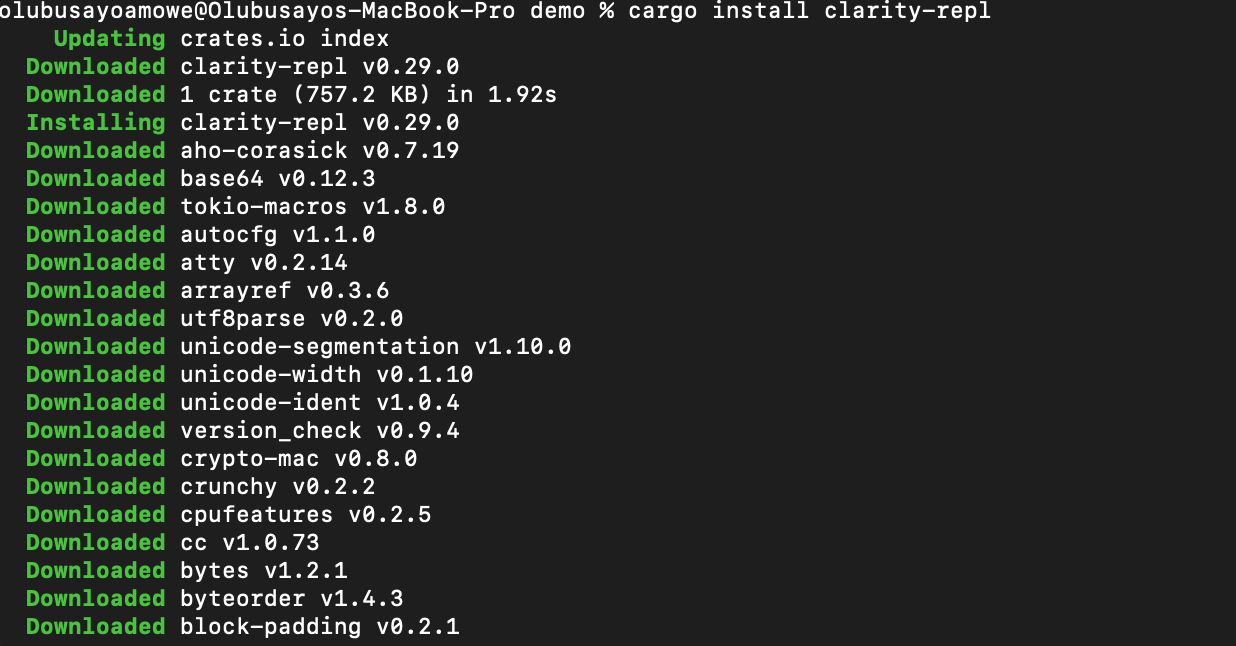 Let us set up our development enviroment first. Start by installing clarity repl directly via cargo