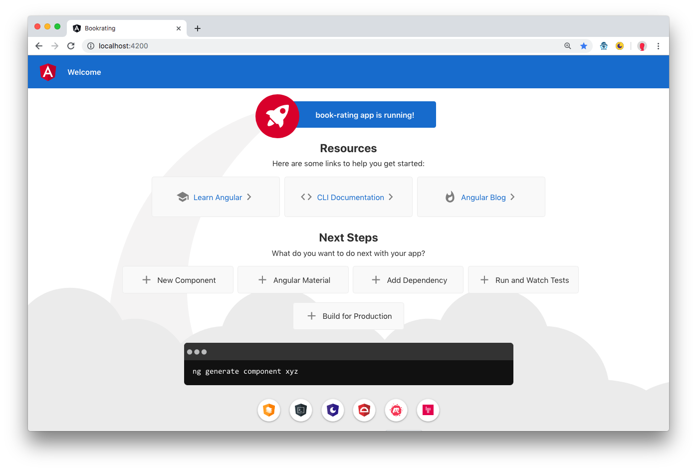 Auf http://localhost:4200 sollte nun eine Website mit dem Text "book-rating app is running!" erscheinen! Wenn bei allen Teilnehmern das Grundgerüst steht, können wir ohne Zeitverlust loslegen.