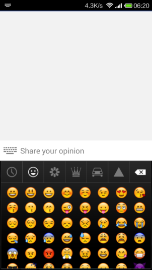 Note: You can change the size of emojis in XML layout through attribute emojiconSize.
