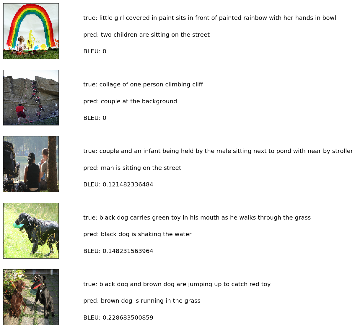 I'm validating the caption predicted by my trained model using Bilingual evaluation understudy (BLEU) BLEU is a well-acknowledged metric to measure the similarly of one hypothesis sentence to multiple reference sentences. Given a single hypothesis sentence and multiple reference sentences, it returns value between 0 and 1. The metric close to 1 means that the two are very similar. BLEU score calculation is implemented in nltk.util and the source code is available. I found this source code is the easiest way to understand this metric. So I will go over the script to understand how the calculation works.