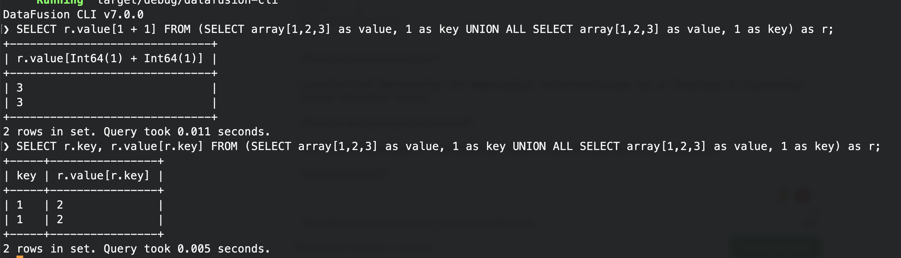 +-----+----------------+SELECT (ARRAY[1,2,3])[1 + 1];Describe the solution you'd like