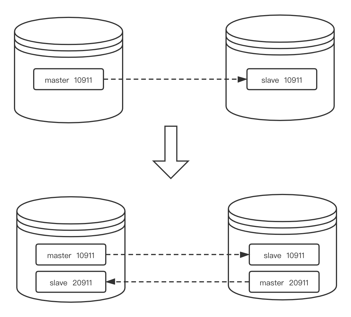 The goal is to change the original master-slave to the mutual master-slave in the figure above.