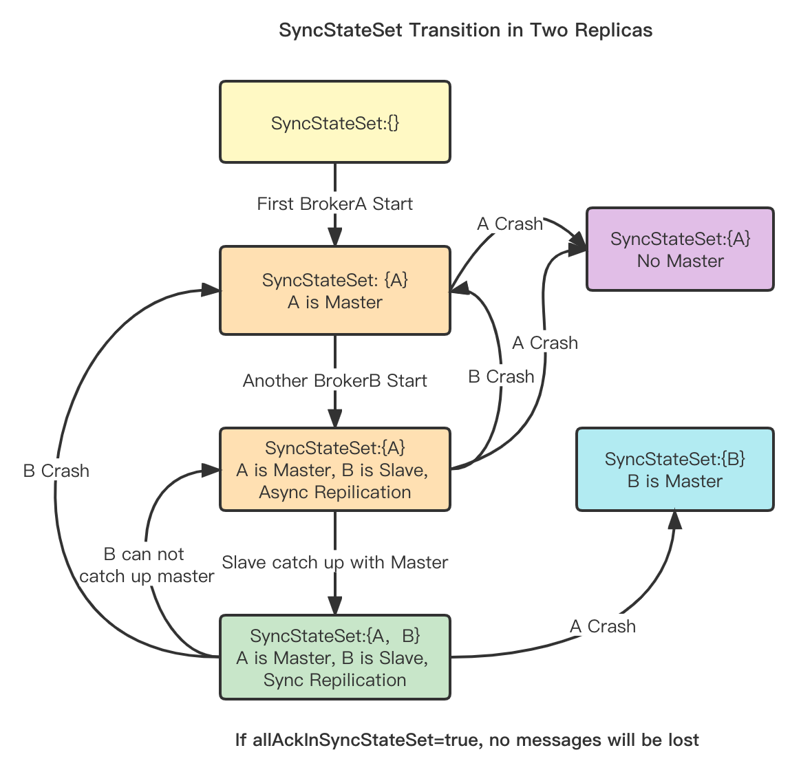 SyncStateSet: It mainly represents the replicas in a broker group that keep up with the master (including the master itself). The main criterion is the gap between the master and the slave. When the master goes offline we elect a new master from the SyncStateSet.