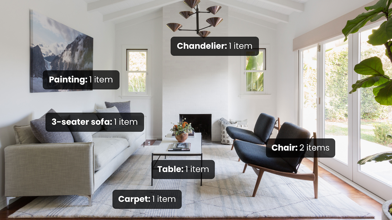 The Furniture & Household Stuff Recognition API offers a complete solution for for the identification and counting furniture and other household items in images. Its algorithm is trained on hundrends of stuff items covering a significant part of potential images.